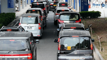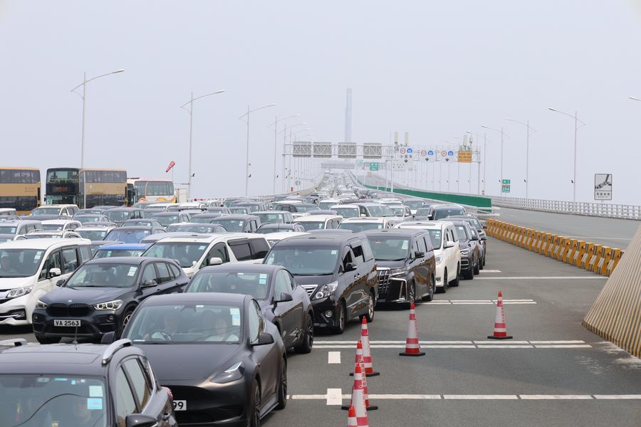 2024年4月6日在港珠澳大橋橋頭拍攝的等待入境的車(chē)輛。 新華社發(fā)(王相國(guó) 攝)