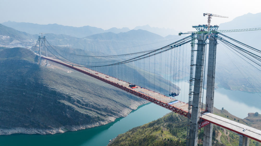 貴州交建集團(tuán)投資建設(shè)的納晴高速牂牁江大橋順利實(shí)現(xiàn)合龍,為納(雍)晴(隆)高速全線建成通車打下堅(jiān)實(shí)基礎(chǔ)(4月28日攝,無(wú)人機(jī)照片)。新華社記者 陶亮 攝