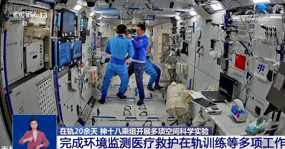 在按計(jì)劃開(kāi)展科學(xué)實(shí)(試)驗(yàn)及實(shí)驗(yàn)裝置維護(hù)的同時(shí),三名航天員還完成了空間站內(nèi)環(huán)境監(jiān)測(cè)、醫(yī)療救護(hù)在軌訓(xùn)練等多項(xiàng)工作。