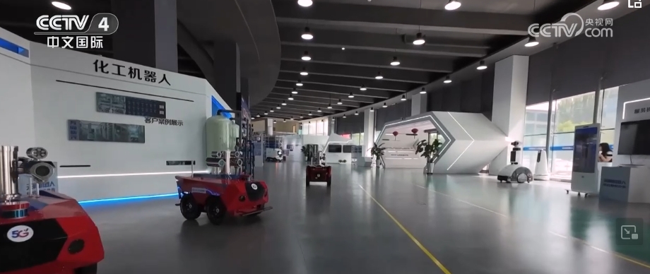 在寧夏中衛(wèi)市一家化工新材料企業(yè)的硝化車間內,一臺輪式機器人和一臺掛軌機器人正在對車間內的設備進行著巡查、巡檢等工作。化工機器人的使用,不但使工作精準度大幅提升,效率更是較人工提高了五倍以上。