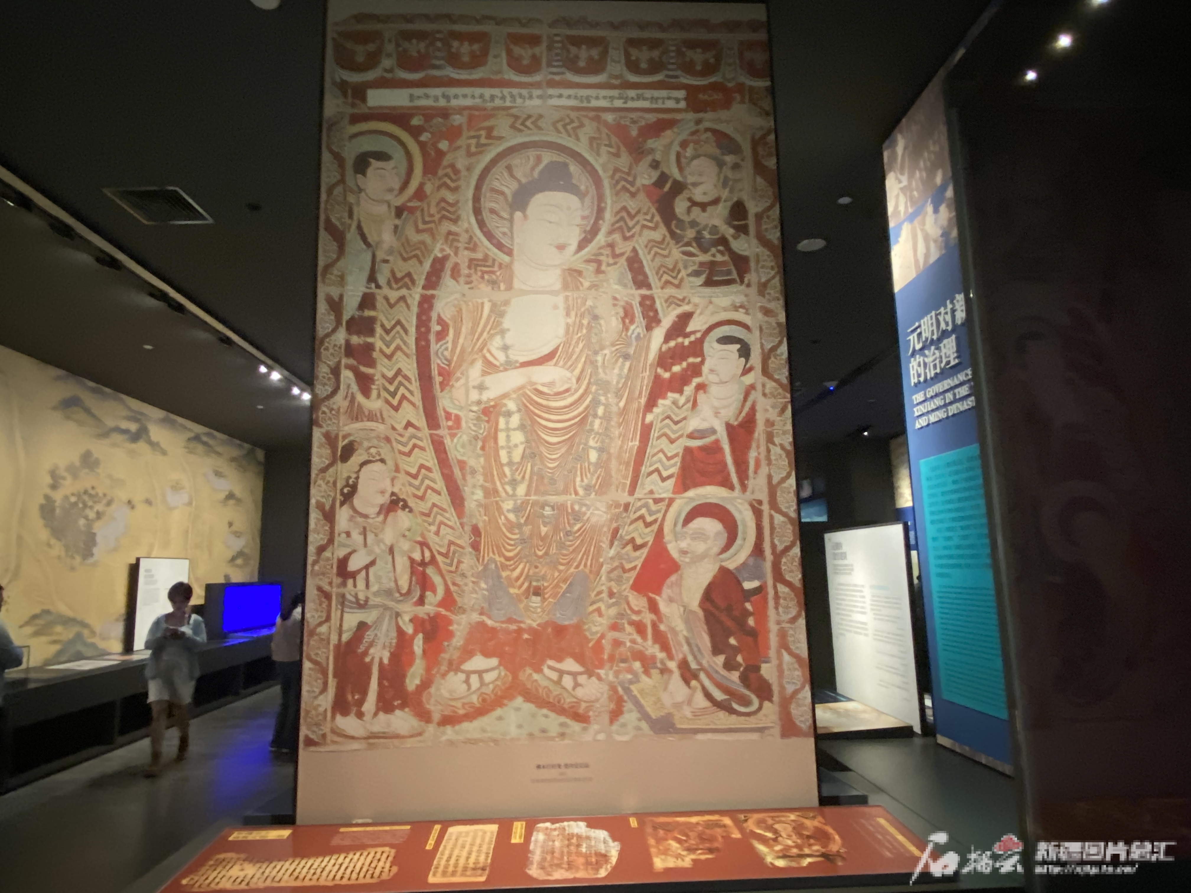 陳列于新疆博物館展廳中的柏孜克里克千佛洞遺址第20窟壁畫圖片形象。天山網(wǎng)-新疆日?qǐng)?bào)記者 趙梅攝