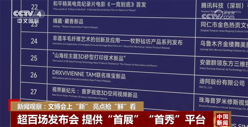 首次設(shè)立國際文化貿(mào)易展,邀請西班牙貿(mào)易協(xié)會、尼泊爾工商聯(lián)合會等國外貿(mào)易機(jī)構(gòu)參展,一站式包攬各地文化產(chǎn)業(yè)精品;在影視·出版·版權(quán)·游戲電競展,首次亮相的“城市文化合伙人”主題展呈現(xiàn)“文化+交易產(chǎn)業(yè)融合新產(chǎn)品”,傳播城市優(yōu)秀文化。據(jù)悉,今年的文博會將舉辦超100場創(chuàng)新項(xiàng)目及新品發(fā)布會和超20場招商會、推介會等,為國內(nèi)外新產(chǎn)品、新技術(shù)、新業(yè)態(tài)、新服務(wù)的發(fā)布提供“首展”“首發(fā)”“首秀”平臺。