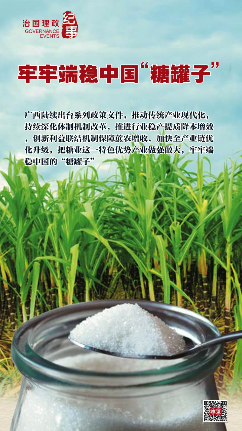 《廣西壯族自治區(qū)人民政府關(guān)于深化體制機(jī)制改革加快糖業(yè)高質(zhì)量發(fā)展的意見》《廣西糖業(yè)降本增效三年行動(dòng)計(jì)劃工作方案》《廣西深化糖料蔗良種良法技術(shù)推廣工作實(shí)施方案》……廣西陸續(xù)出臺(tái)系列政策文件,推動(dòng)傳統(tǒng)產(chǎn)業(yè)現(xiàn)代化,持續(xù)深化體制機(jī)制改革,推進(jìn)行業(yè)穩(wěn)產(chǎn)提質(zhì)降本增效,創(chuàng)新利益聯(lián)結(jié)機(jī)制保障蔗農(nóng)增收,加快全產(chǎn)業(yè)鏈優(yōu)化升級(jí),把糖業(yè)這一特色優(yōu)勢(shì)產(chǎn)業(yè)做強(qiáng)做大,牢牢端穩(wěn)中國(guó)的“糖罐子”。