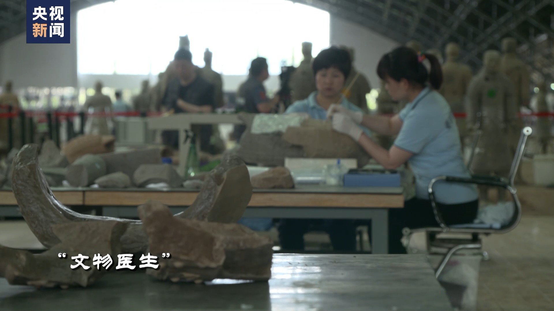 記者:我看到坑里那些陶俑的時候,發(fā)現(xiàn)其實他們身上的修復(fù)痕跡可能我隔得比較遠,已經(jīng)基本上看不到了。是有什么特殊的方法,把這些拼接的地方給弄得特別的自然?