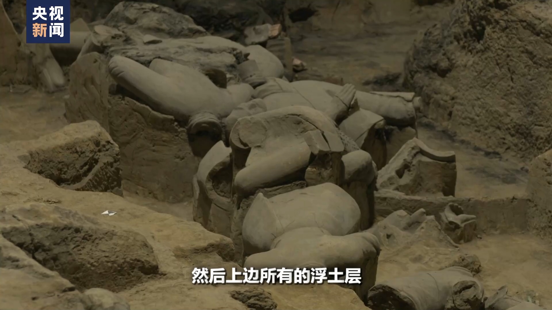 秦始皇帝陵博物院副院長 周萍:其實秦始皇帝陵博物院出土,不僅僅只有彩繪陶俑?,F(xiàn)在觀眾去現(xiàn)場去看的時候,最常看到的就是幾種材質(zhì),一種就是我們的彩繪陶俑,一種是坑內(nèi)的土遺址,一種我們銅車馬是金屬文物;其實在土遺址里面,有很多很多這種木質(zhì)的遺存。它這個就是我們這個隔梁在建的時候,實際上就相當(dāng)于用木頭去搭了一個相當(dāng)于小房子,把這些彩繪俑保存在里面。