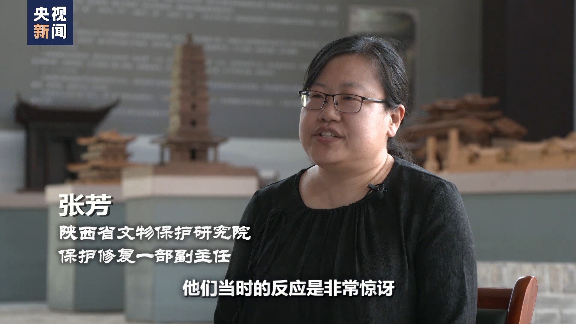 陜西省文物保護研究院保護修復(fù)一部副主任 張芳:他們當(dāng)時的反應(yīng)是非常驚訝,因為這種純粹的,沒有用一根釘子的榫卯結(jié)構(gòu)層層疊疊,在上面天宮樓閣的一個呈現(xiàn)。他們在法國是完全見不到,他們也想象不到。