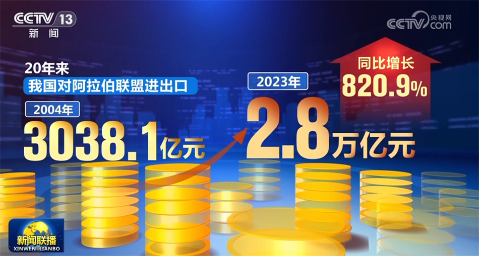 5月30日是中國(guó)—阿拉伯國(guó)家合作論壇成立20周年。據(jù)海關(guān)統(tǒng)計(jì),20年來,我國(guó)對(duì)阿拉伯聯(lián)盟進(jìn)出口由2004年的3038.1億元增長(zhǎng)至2023年的2.8萬億元,同比增長(zhǎng)820.9%。
