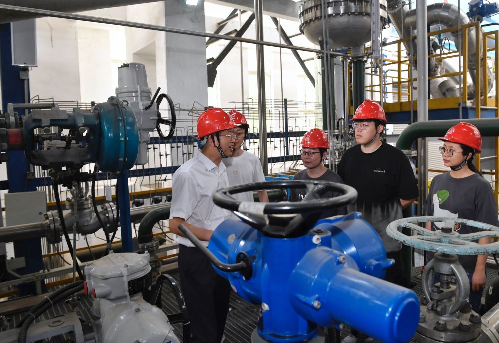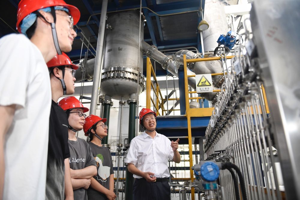 5月24日,在位于成都的中國核動(dòng)力研究設(shè)計(jì)院內(nèi),鐘元章(左一)與團(tuán)隊(duì)年輕人在試驗(yàn)臺架上交流。