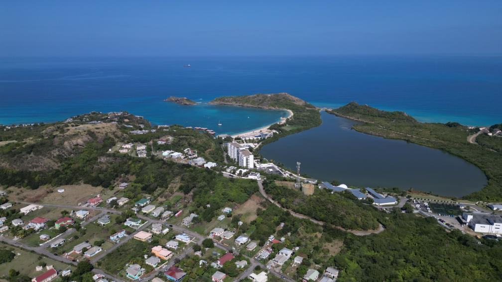 這是2月1日用無人機拍攝的安提瓜和巴布達首都圣約翰海岸線一景。新華社發(fā)(里卡多·蒙托亞攝)