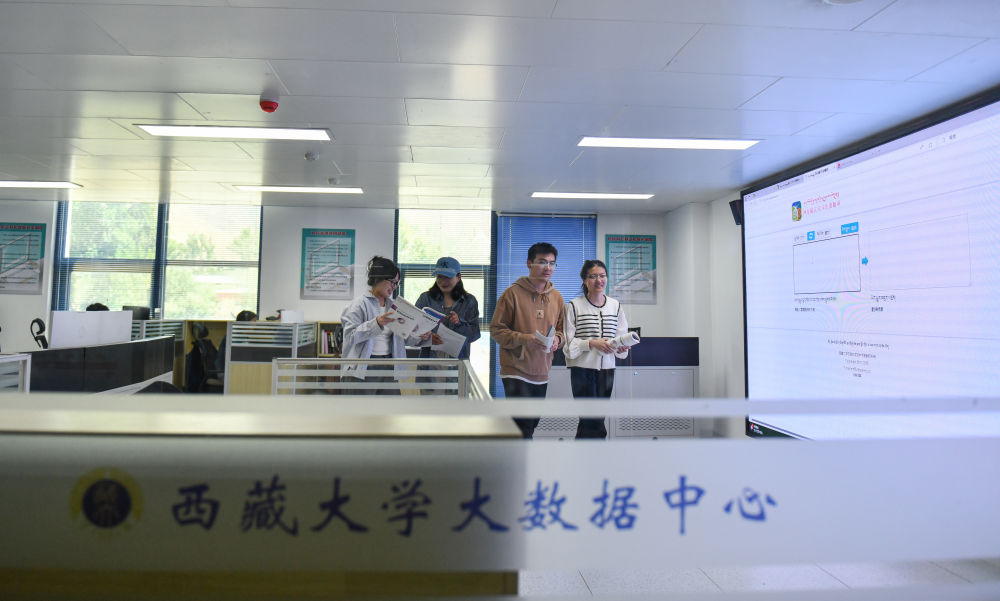5月30日,尼瑪扎西的學生在西藏大學大數(shù)據(jù)中心結束翻譯軟件測試。新華社記者 晉美多吉 攝