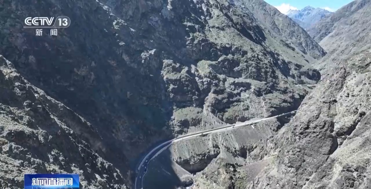 總臺記者 劉菲:這一路可以說是崖壁陡峭、巖石突兀,這一側(cè)是垂直接近90度的山體,上下的高差達(dá)到200多米。在這條公路上行駛,可以感覺到翻過一座險要山峰,另一側(cè)就邂逅了高山草甸的綠意。