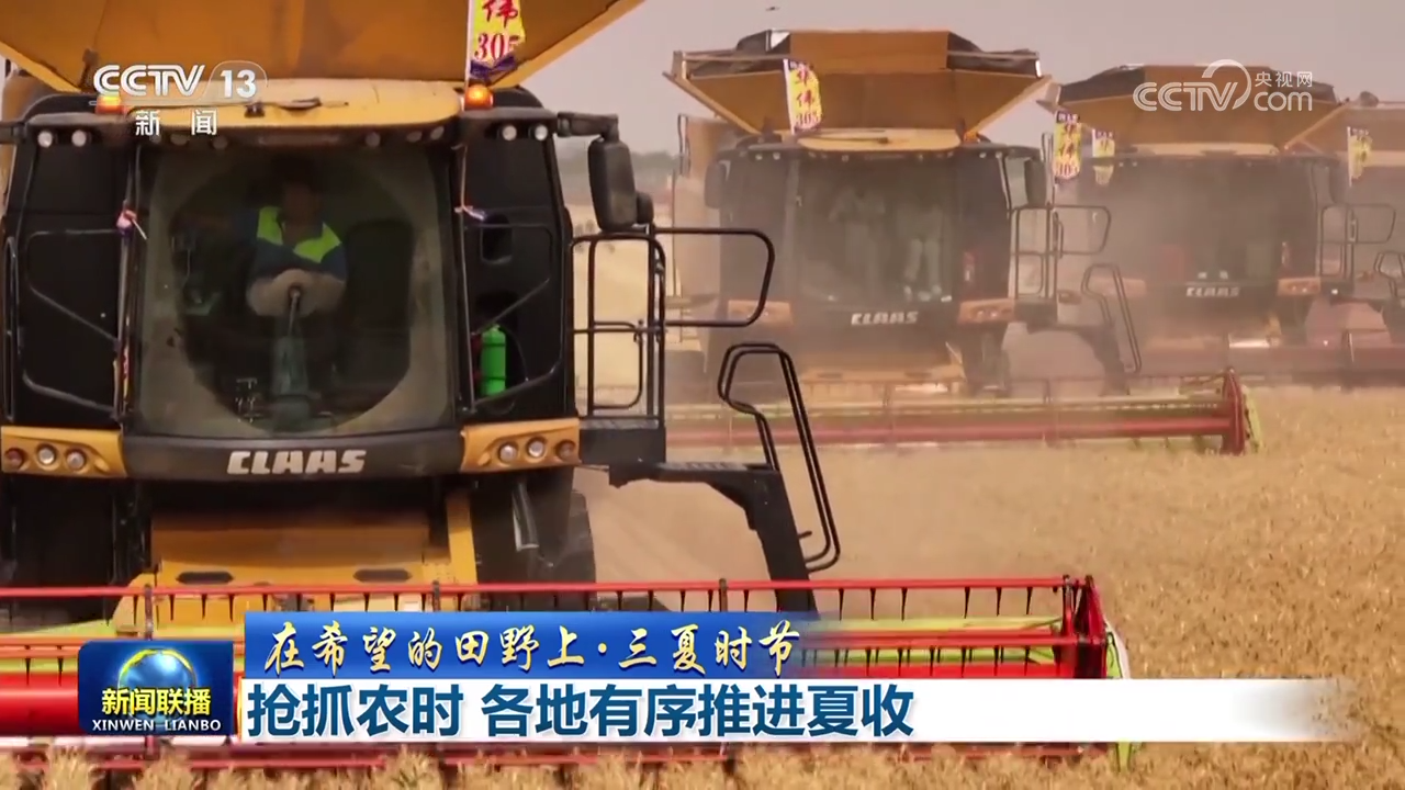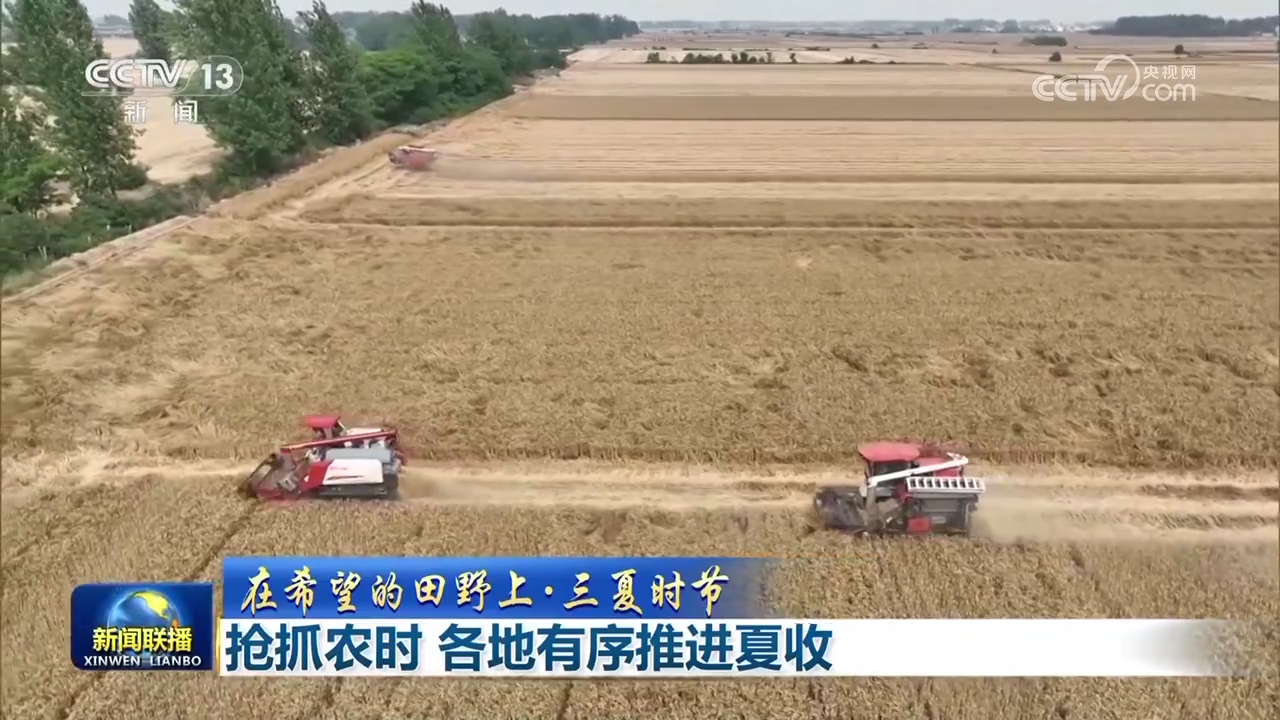 安徽小麥主產(chǎn)區(qū)收獲已過六成,在蒙城,當(dāng)?shù)爻浞掷没ヂ?lián)網(wǎng)、大數(shù)據(jù)、北斗導(dǎo)航等信息化技術(shù),搭建農(nóng)機(jī)作業(yè)指揮調(diào)度平臺(tái),可實(shí)時(shí)查詢農(nóng)機(jī)位置、農(nóng)機(jī)狀態(tài),隨時(shí)予以調(diào)度,機(jī)收作業(yè)區(qū)域做到定人、定地、定機(jī)械,讓麥?zhǔn)兆鳂I(yè)更高效。山東6000多萬畝小麥陸續(xù)進(jìn)入收獲期,在濟(jì)南長清區(qū),收割機(jī)來回穿梭,小麥?zhǔn)崭?、脫粒、秸稈粉碎還田一氣呵成,隨后玉米播種機(jī)下地,同步進(jìn)行玉米播種和施肥,實(shí)現(xiàn)夏收、夏播無縫銜接。