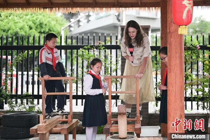 28歲的宋瀟佩來自波蘭,是重慶大學(xué)的一名留學(xué)生,這是她在中國度過的第一個端午節(jié)。為學(xué)習(xí)端午傳統(tǒng)文化習(xí)俗,宋瀟佩特地穿上中式服裝,走進(jìn)重慶市艾草文化研究指導(dǎo)基地——重慶兩江新區(qū)嘉木小學(xué)校,以艾草為媒,和孩子們一同學(xué)習(xí)“艾+”學(xué)科生活融創(chuàng)教育課程,感受傳統(tǒng)文化在節(jié)日里煥發(fā)的新生機(jī)。