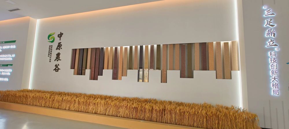 小麥、水稻、花生等10余個(gè)品類(lèi)的種子,在墻面上30根亞克力管柱承裝著,形似風(fēng)吹麥浪,迎接著豐收的季節(jié)。在位于河南省新鄉(xiāng)市的中原農(nóng)谷展廳,來(lái)自河南省內(nèi)各個(gè)縣區(qū)的重要口糧在這里錯(cuò)落有致地展示著,像一座“糧食長(zhǎng)城”一樣,守護(hù)著中原大地的“飯碗”。