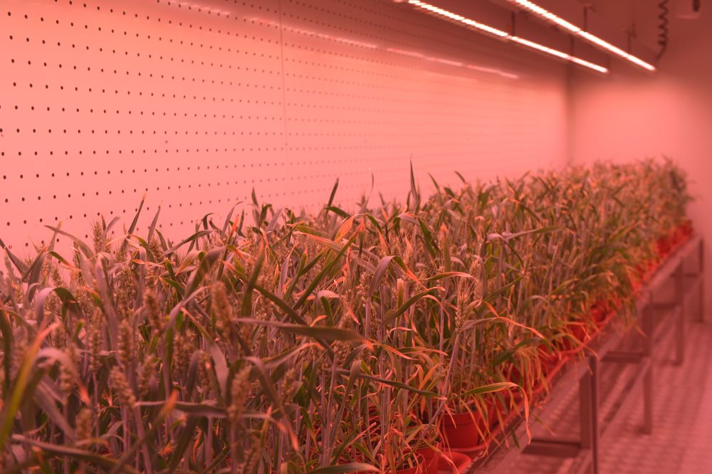 這是5月31日在位于河南新鄉(xiāng)的中原農(nóng)谷國(guó)家生物育種產(chǎn)業(yè)創(chuàng)新中心神農(nóng)種業(yè)實(shí)驗(yàn)室人工氣候室內(nèi)拍攝的培養(yǎng)架上的小麥苗。(新華社記者劉力航 攝)