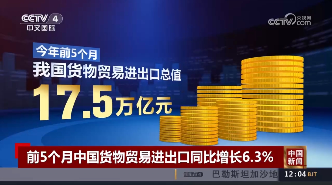 今天(6月7日),海關(guān)總署公布,今年前5個(gè)月,中國(guó)貨物貿(mào)易進(jìn)出口同比增長(zhǎng)達(dá)6.3%。今年以來(lái),中國(guó)外貿(mào)向好的勢(shì)頭不斷鞏固。