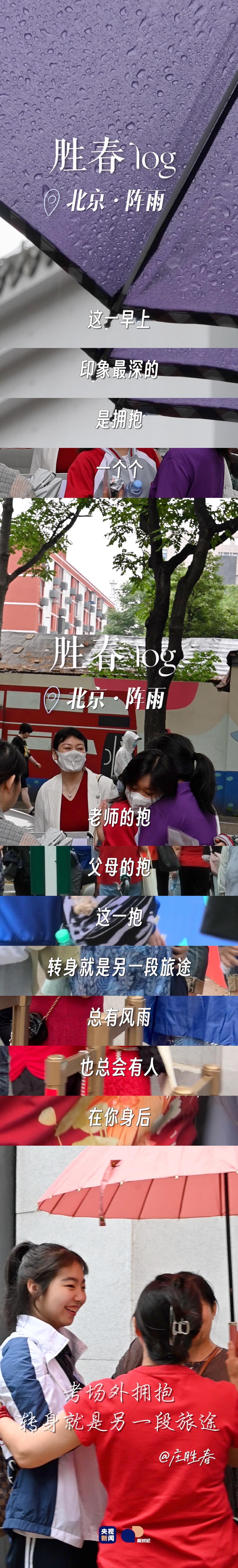 北京的陣雨里,不少考生,要在進(jìn)場前,等等爸爸媽媽。