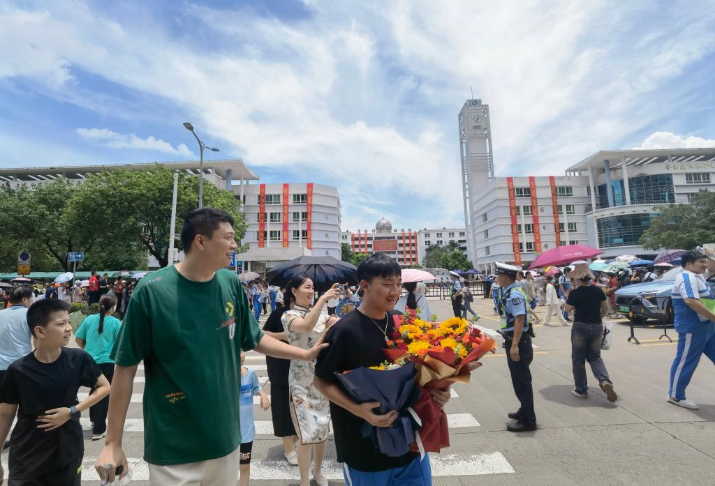 “孩子沒(méi)有選考后續(xù)的生物和地理,這就算正式完成高考了。”黃女士將手中的一束鮮花遞給兒子說(shuō),“高考只是一次人生閱歷,盡力了就好?!?/p>