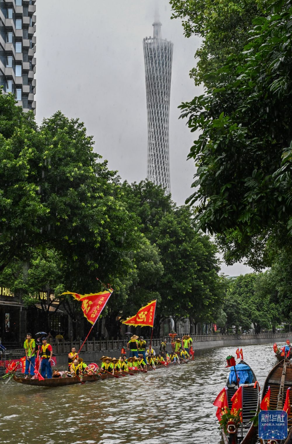 6月10日,國(guó)內(nèi)外游客匯聚在獵德觀賞“龍船景”?!褒埓啊笔菑V府地區(qū)水鄉(xiāng)在端午期間舉辦的一種民俗活動(dòng)。