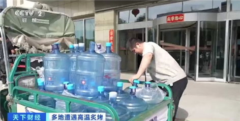 高溫天氣下,出行的人們打起了遮陽(yáng)傘、戴上了遮陽(yáng)帽。 受高溫天氣影響,人們對(duì)飲用水的需求也增加不少,在烏魯木齊市的一處樓宇,送水工人比平時(shí)忙碌很多。