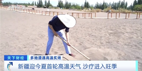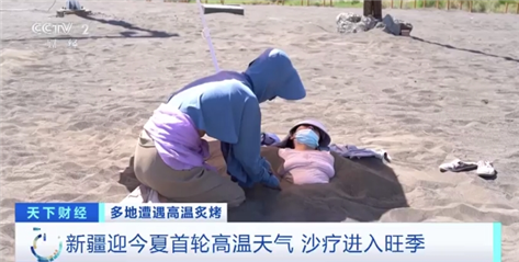 從6月10日開(kāi)始,新疆大部分地區(qū)迎來(lái)了入夏以來(lái)首輪高溫天氣,部分地區(qū)的氣溫升至40攝氏度以上。在吐魯番,沙療產(chǎn)業(yè)迎來(lái)了旺季。