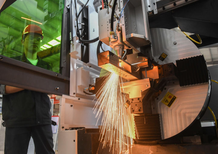 在位于湖北武漢“中國(guó)光谷”的華工科技產(chǎn)業(yè)股份有限公司連續(xù)取得關(guān)鍵核心技術(shù)突破,實(shí)現(xiàn)高性能三維五軸激光切割機(jī)完全國(guó)產(chǎn)化。(視頻截圖)