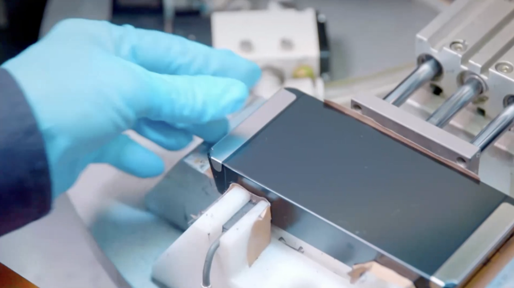圖為江西金力永磁科技股份有限公司生產(chǎn)線上生產(chǎn)的高性能永磁體。(視頻截圖)