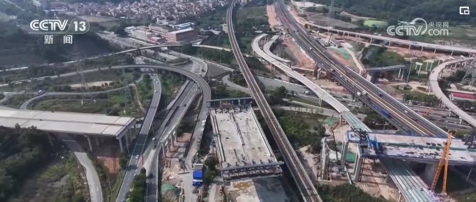 中開高速在河道縱橫交錯、高速公路密度較高的珠三角地區(qū),橋隧比高達94%。其中,在跨越廣澳高速和廣珠城際的位置,橋梁施工遇到了最大難題,就是施工不能影響高速與城際的正常運行。為此,施工單位建造一座單體轉體橋,通過橋體旋轉,避免施工與正常行車形成沖突。