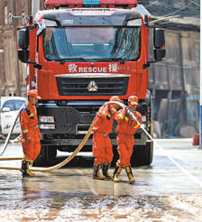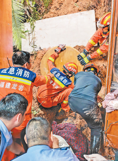 6月17日,消防人員在福建省龍巖市武平縣象洞鎮(zhèn)開(kāi)展救援。