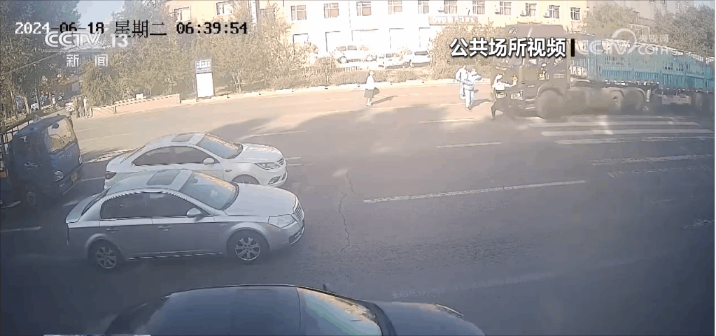 陳作兵事后回憶說:“車子開過來的時候,當時我是背對著車,但是聽見學校也有一個安全員在邊上按小喇叭,我這一回頭的功夫看見學生往那走,當時看著大貨車就過來了,站不住,我就是下意識用手,就是一轉(zhuǎn)身的功夫截停它,手和車接觸上的時候給我彈出去了,彈出去有兩米多遠。”