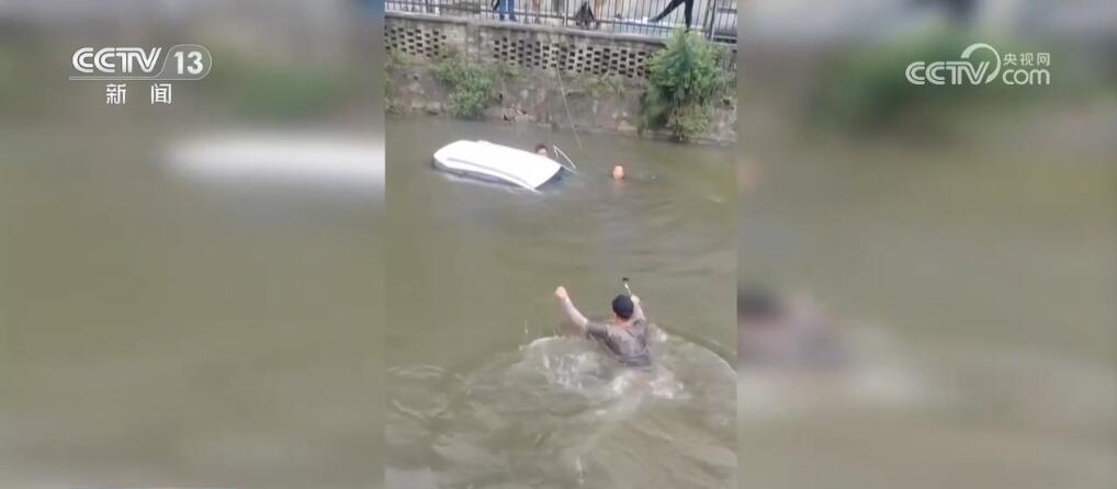 三人齊心協(xié)力幫司機脫困,并將他送往醫(yī)院治療。隨后,接到報警的消防救援人員也趕到現(xiàn)場,下水查看確定車上無人員被困。
