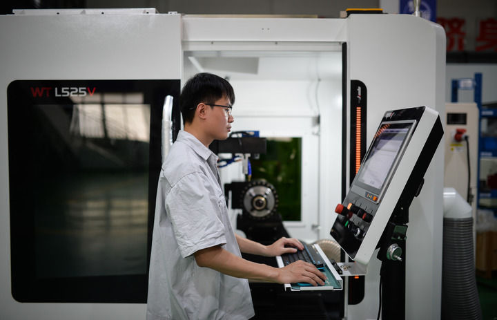 員工在位于廣東省佛山市的原點智能技術(shù)有限公司車間操作數(shù)控機(jī)床(5月16日攝)。新華社記者 李任滋 攝
