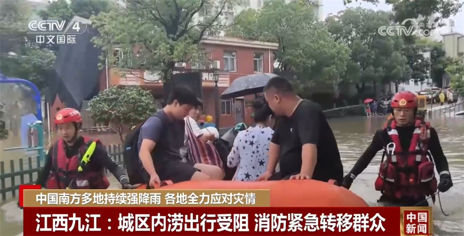 23日,江西九江遭遇強(qiáng)降雨,城區(qū)出現(xiàn)積水內(nèi)澇,部分路段積水深超一米,居民出行受到影響。當(dāng)?shù)叵谰仍藛T利用橡皮艇幫助群眾轉(zhuǎn)移,同時,消防救援人員使用浮艇泵,連接水帶,開展排水作業(yè)。