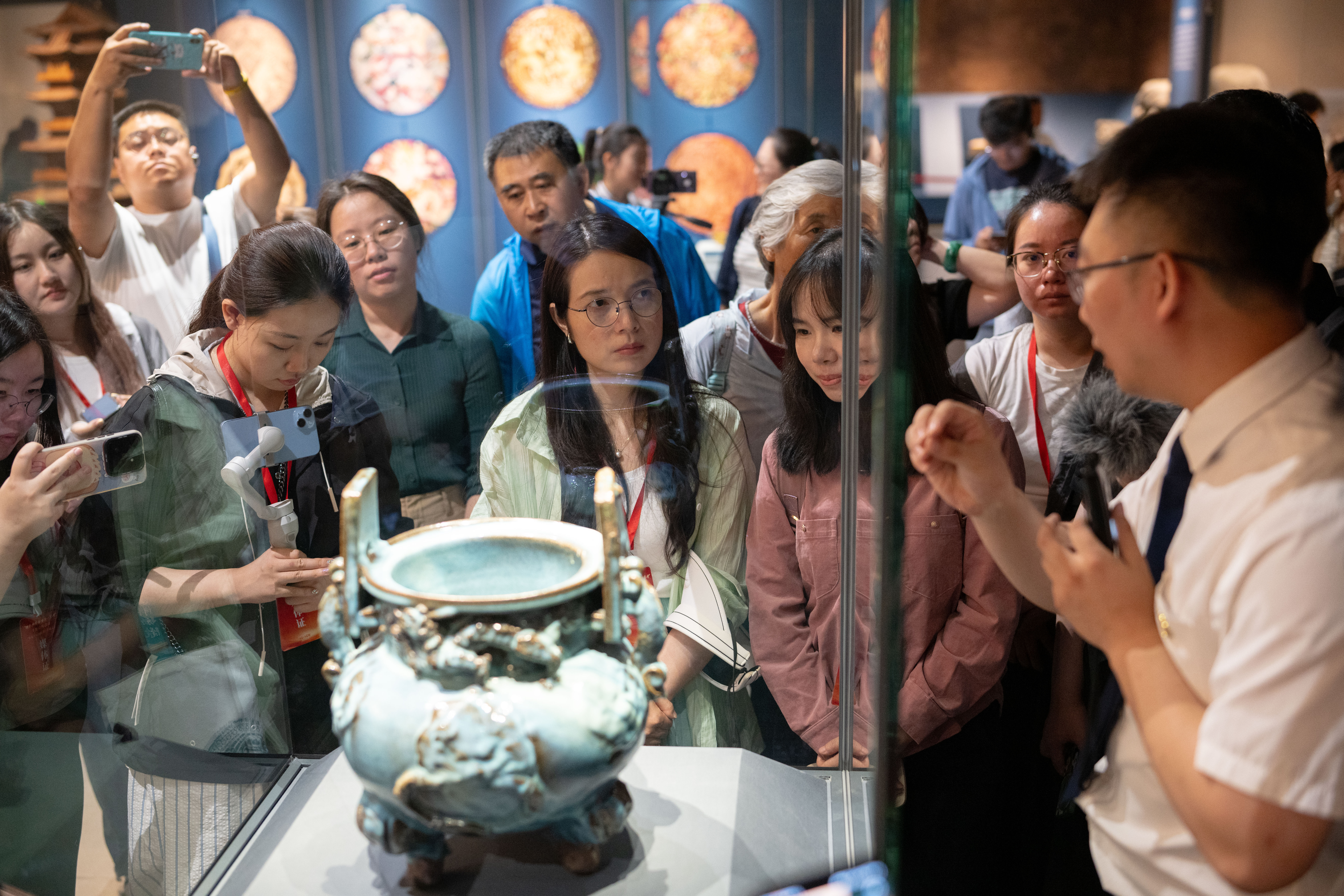 在內(nèi)蒙古博物院,采訪團(tuán)成員聽講解。
