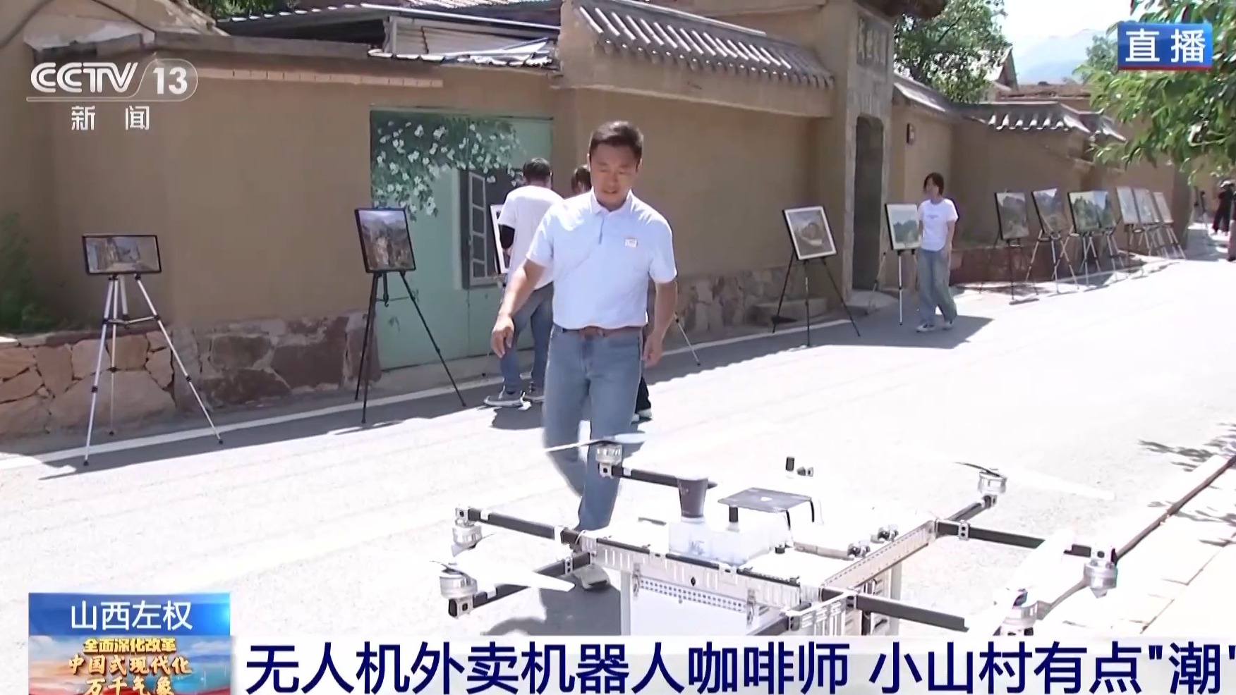 隨著前來寫生的人越來越多,澤城村的“賣點”逐漸多了起來。小小的一杯咖啡在城市里不足為奇,但是在這里我要通過這杯咖啡介紹兩個特點。第一點,這杯咖啡不是我從店里自取,也不是外賣小哥送過來的,而是在直播前我通過由村民操控的這架無人機收取的,這個無人機可攜帶10公斤貨物送達10公里外的顧客手中。但是無人機外賣只是它其中一項業(yè)務,如果村里急需醫(yī)療物資或者在災害環(huán)境中運送緊急物資,它都是一把好手。