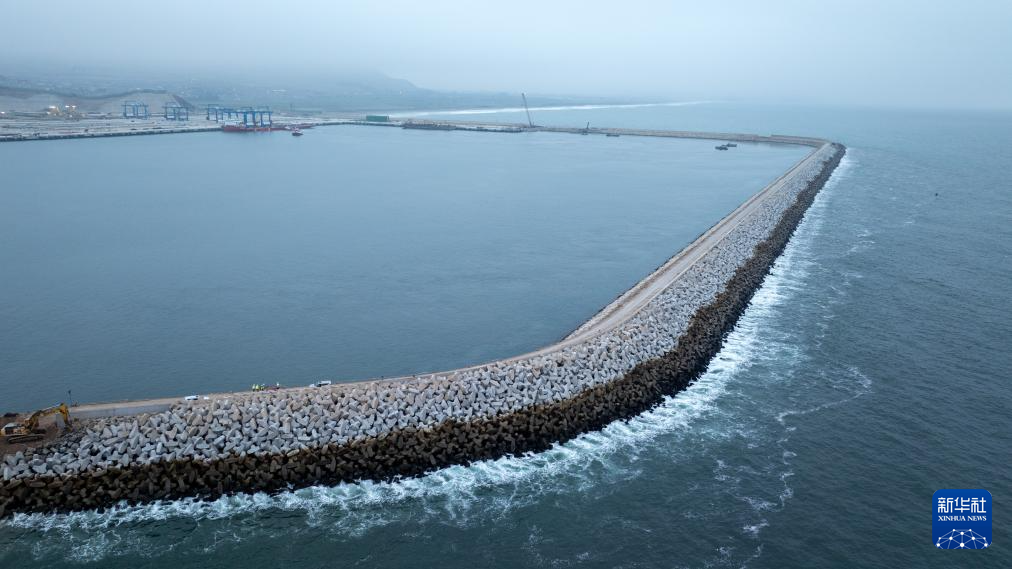 這是6月21日在秘魯錢凱港拍攝的防波堤(無人機(jī)照片)。 新華社記者 李木子 攝