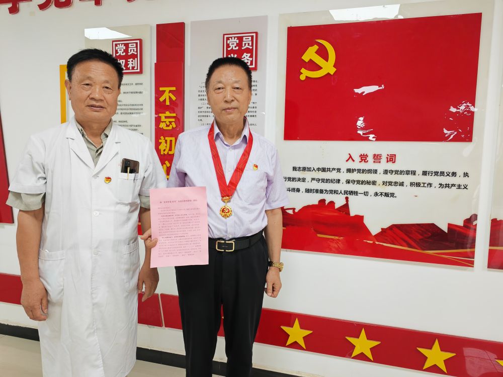 為李長海頒發(fā)紀念章的是西安市高陵區(qū)醫(yī)院退休黨支部書記杜軍政,從2021年至今,他已經(jīng)為6名黨員頒發(fā)過“光榮在黨50年”紀念章。“每一次頒發(fā)紀念章,都會聽老黨員講一講他們的故事,都是一次精神的洗禮和傳承。”