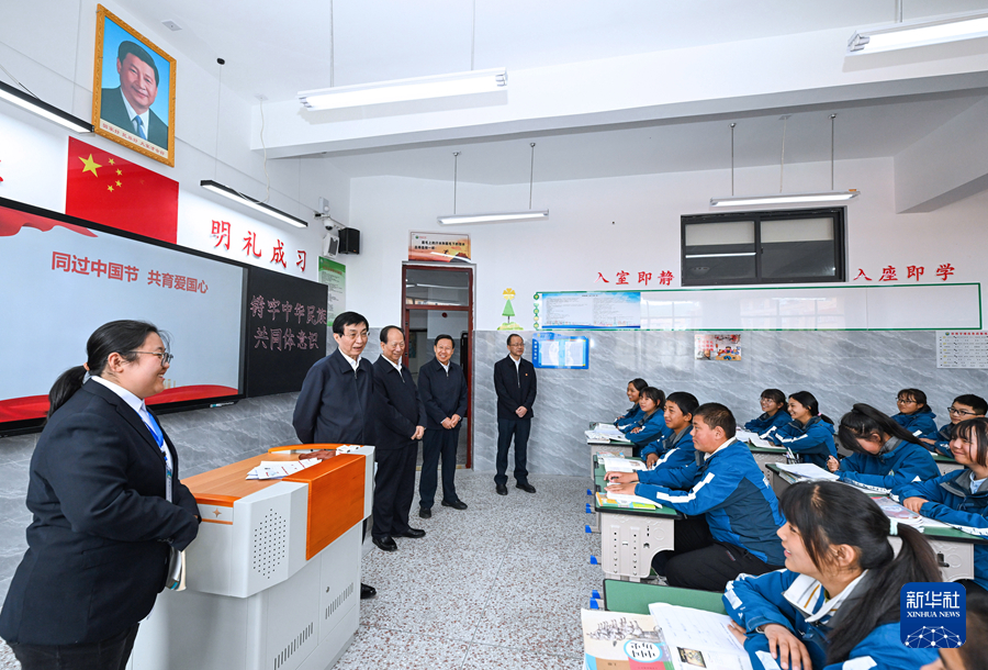 7月1日至3日,中共中央政治局常委、全國(guó)政協(xié)主席王滬寧在四川甘孜、阿壩調(diào)研。這是7月3日王滬寧在阿壩縣中學(xué)了解開(kāi)展愛(ài)國(guó)主義教育和民族團(tuán)結(jié)進(jìn)步教育情況。新華社記者 饒愛(ài)民 攝