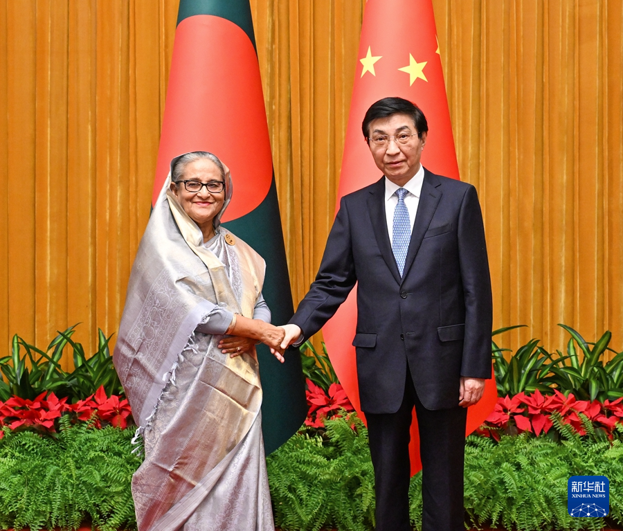 全國政協(xié)主席王滬寧9日在京會(huì)見孟加拉國總理哈西娜。