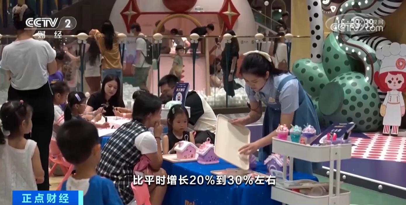 某室內(nèi)游樂(lè)場(chǎng)深圳一方天地店值班經(jīng)理麥麗勤介紹:“比平時(shí)增長(zhǎng)20%至30%左右,因?yàn)楹⒆觽兎偶倭耍议L(zhǎng)們也有空帶孩子們過(guò)來(lái)玩?!?/p>
