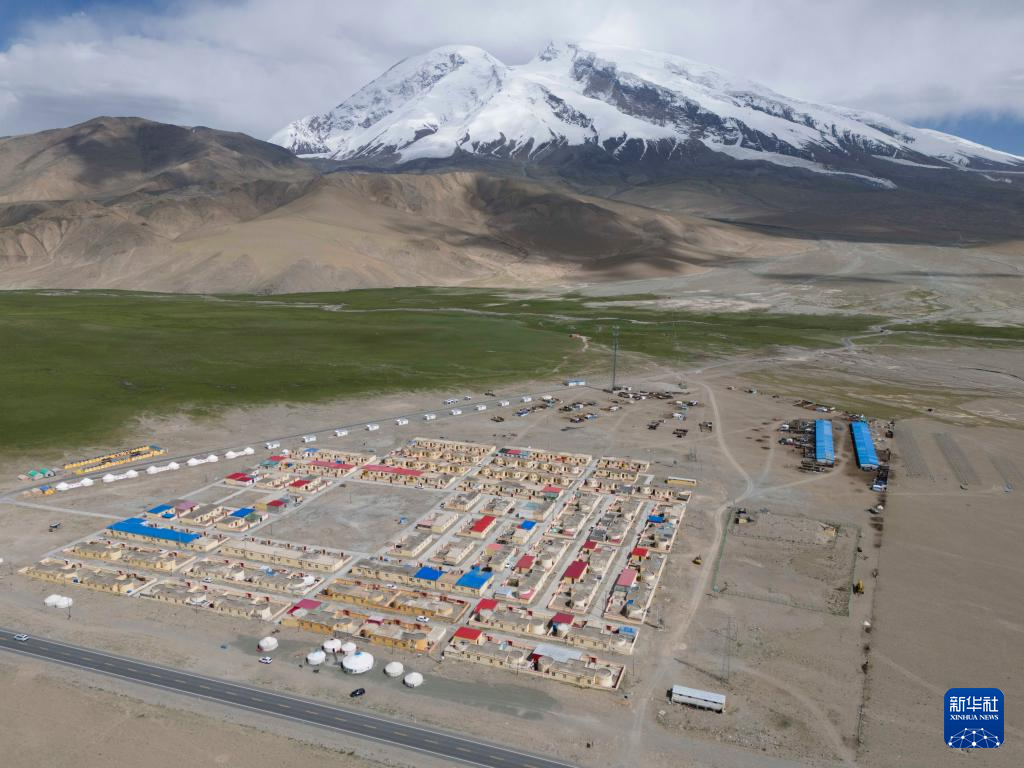 塔西巴伊家住新疆慕士塔格峰腳下的阿克陶縣布倫口鄉(xiāng)蘇巴什村三小隊(duì)(7月2日攝,無人機(jī)照片)。新華社記者 胡虎虎 攝