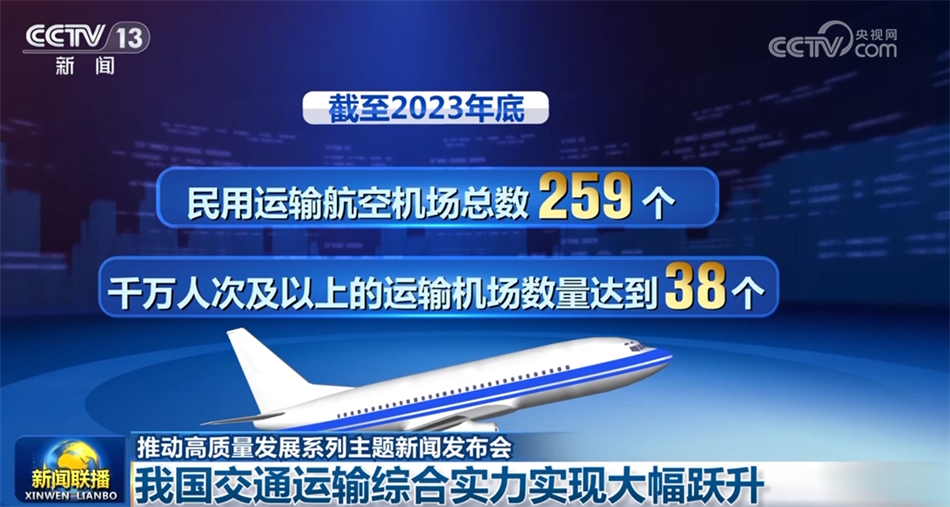五年來,客貨運(yùn)輸不斷發(fā)展,群眾出行更加舒適便捷,貨物運(yùn)輸更加順暢高效。截至2023年底,我國鐵路營業(yè)里程15.9萬公里,其中高鐵營業(yè)里程4.5萬公里;全國公路里程543.68萬公里,其中高速公路里程18.36萬公里;民用運(yùn)輸航空機(jī)場總數(shù)259個,千萬人次及以上的運(yùn)輸機(jī)場數(shù)量達(dá)到38個。