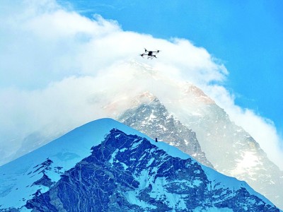中國民用無人機(jī)完成全球首次珠峰6000米海拔物資運(yùn)輸。新華社發(fā)