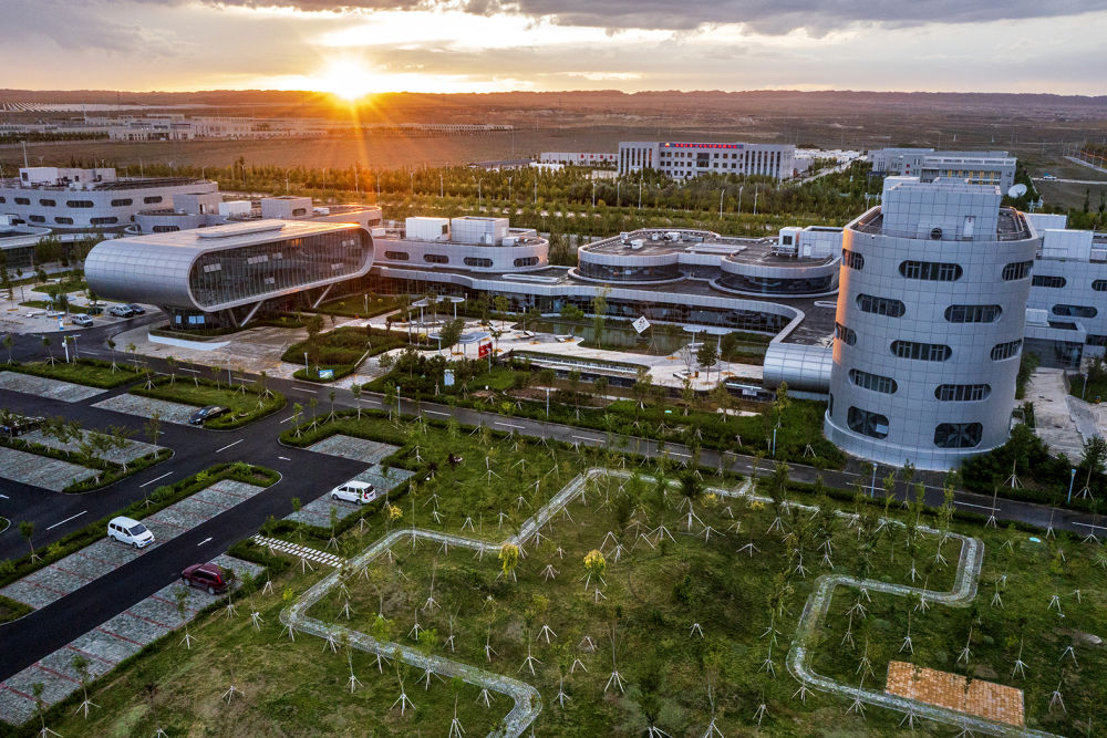 從空中俯瞰克拉瑪依云計算產(chǎn)業(yè)園區(qū)(2021年8月13日攝)。新華社發(fā)(閔勇 攝)