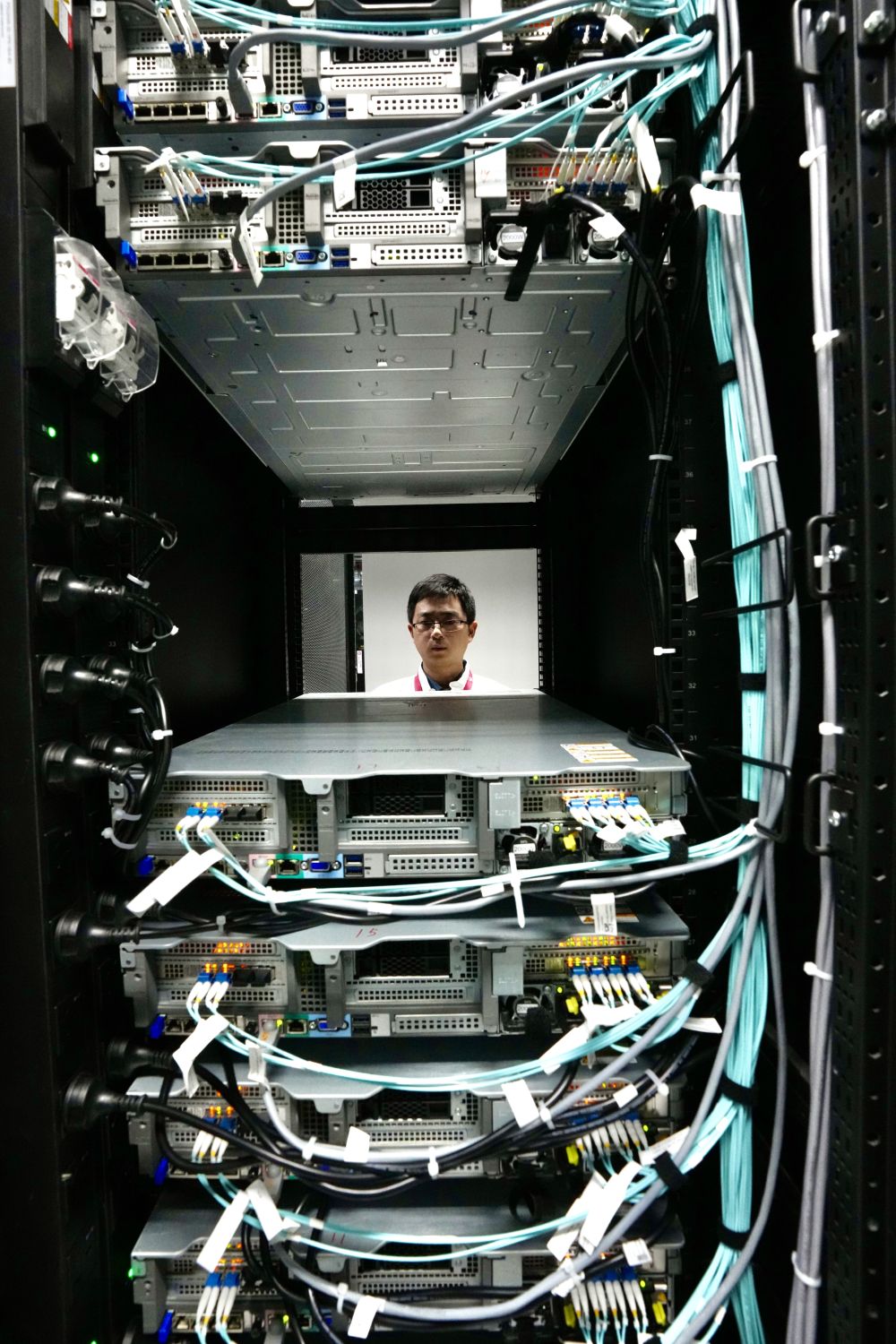 2月27日,克拉瑪依云計算產(chǎn)業(yè)園區(qū)華為云服務數(shù)據(jù)中心,技術人員正在巡查。新華社發(fā)(崔文娟 攝)