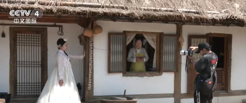 在吉林延吉的中國朝鮮族民俗園區(qū)內,朝鮮族生活場景吸引了很多身著民族服飾的游客拍照打卡,這也帶火了當?shù)氐穆门氖袌觥?/p>