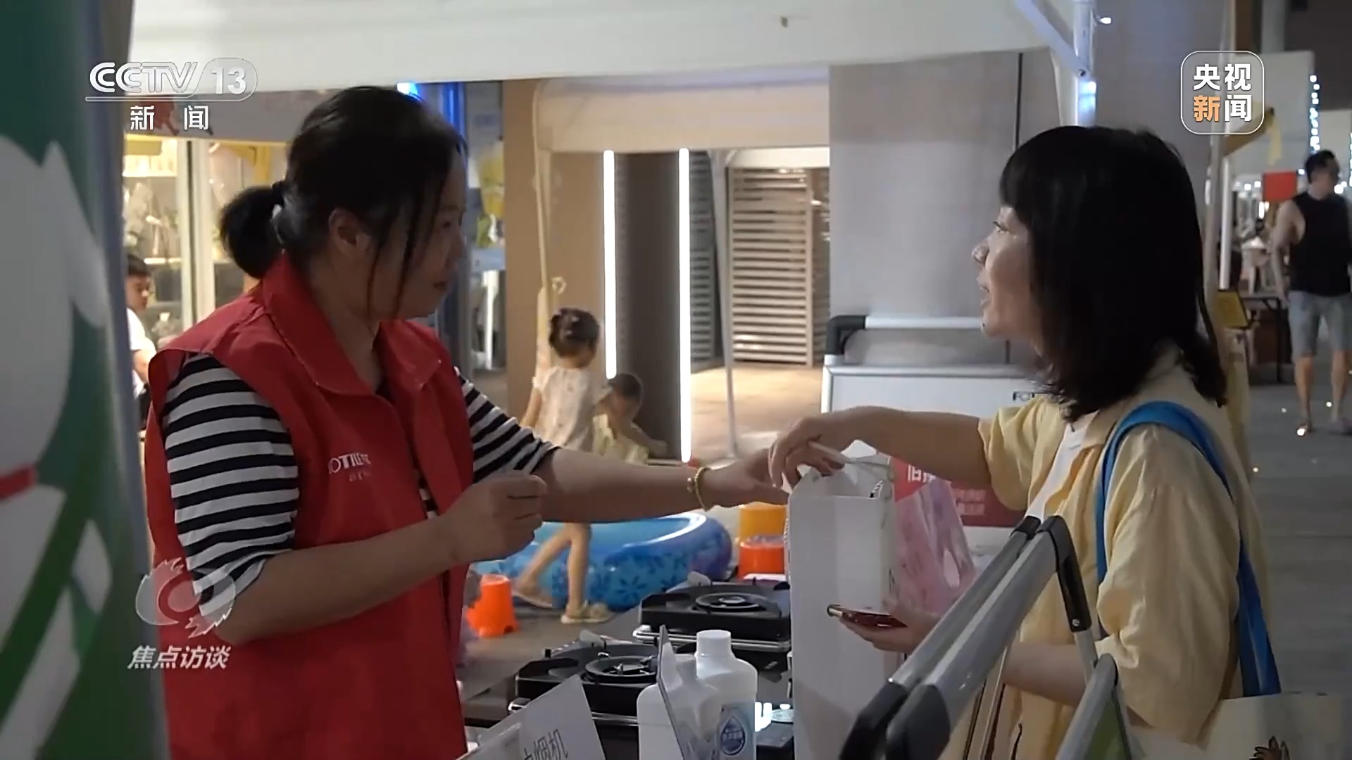 在上海,家電“以舊換新”夜市開到了社區(qū)里,居民在家門口就能了解補貼政策,選購商品。