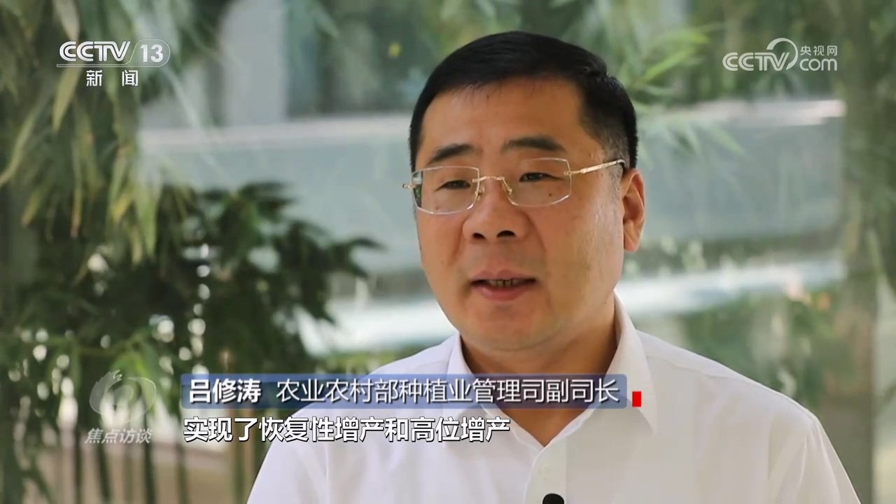 農(nóng)業(yè)農(nóng)村部種植業(yè)管理司副司長(zhǎng)呂修濤:“今年的“三夏”生產(chǎn)可以用“過(guò)五關(guān)斬六將”來(lái)形容,克服了一系列風(fēng)險(xiǎn)和挑戰(zhàn),實(shí)現(xiàn)了恢復(fù)性增產(chǎn)和高位增產(chǎn),這是今年夏糧一個(gè)非常突出的成果。”