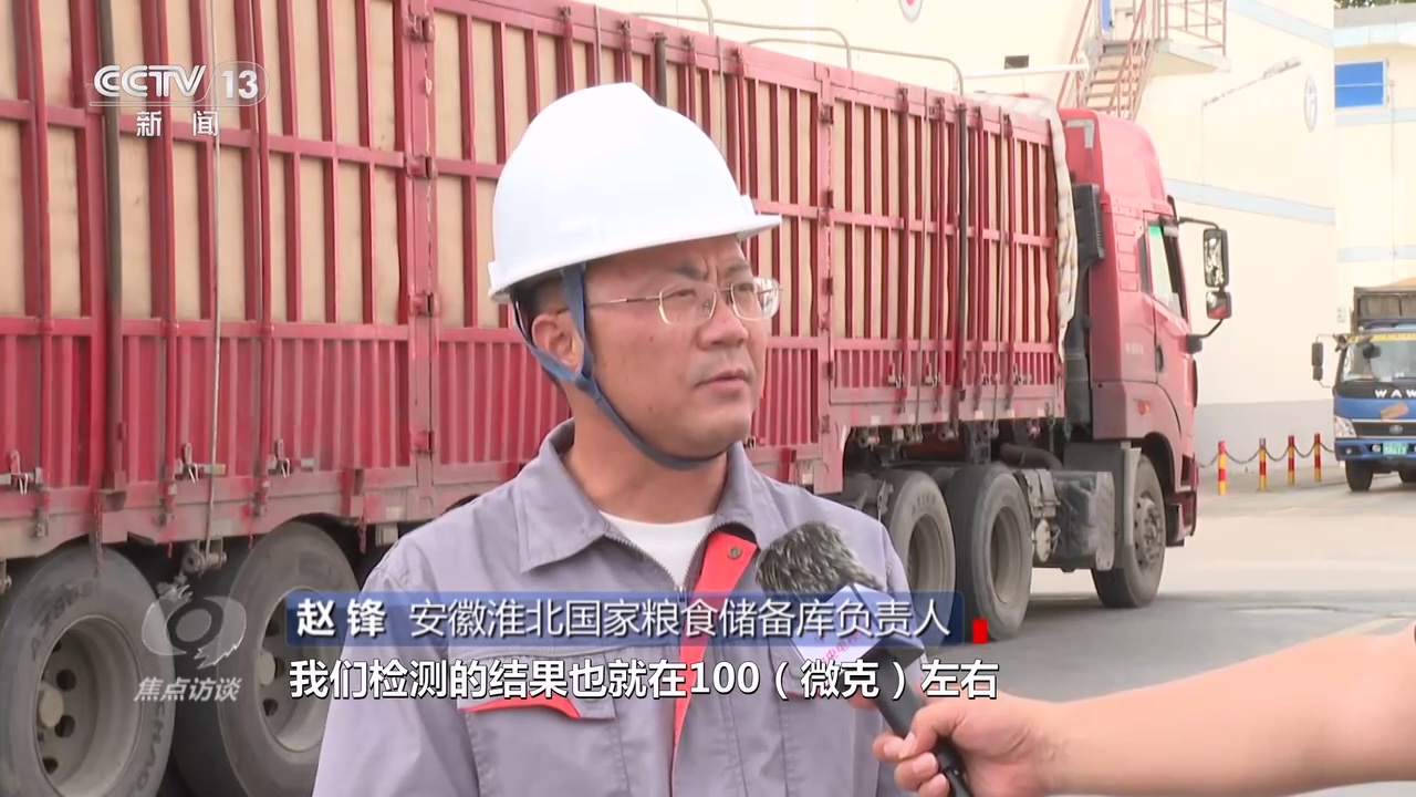 安徽淮北國(guó)家糧食儲(chǔ)備庫(kù)負(fù)責(zé)人趙鋒:“嘔吐毒素標(biāo)準(zhǔn)是每一千克小于1000微克,我們檢測(cè)的結(jié)果也就在100微克左右,有的檢不出來(lái)。玉米赤霉烯酮(標(biāo)準(zhǔn))是每一千克小于60微克,檢測(cè)結(jié)果基本上在10微克以?xún)?nèi),小麥的質(zhì)量非常好?!?/p>