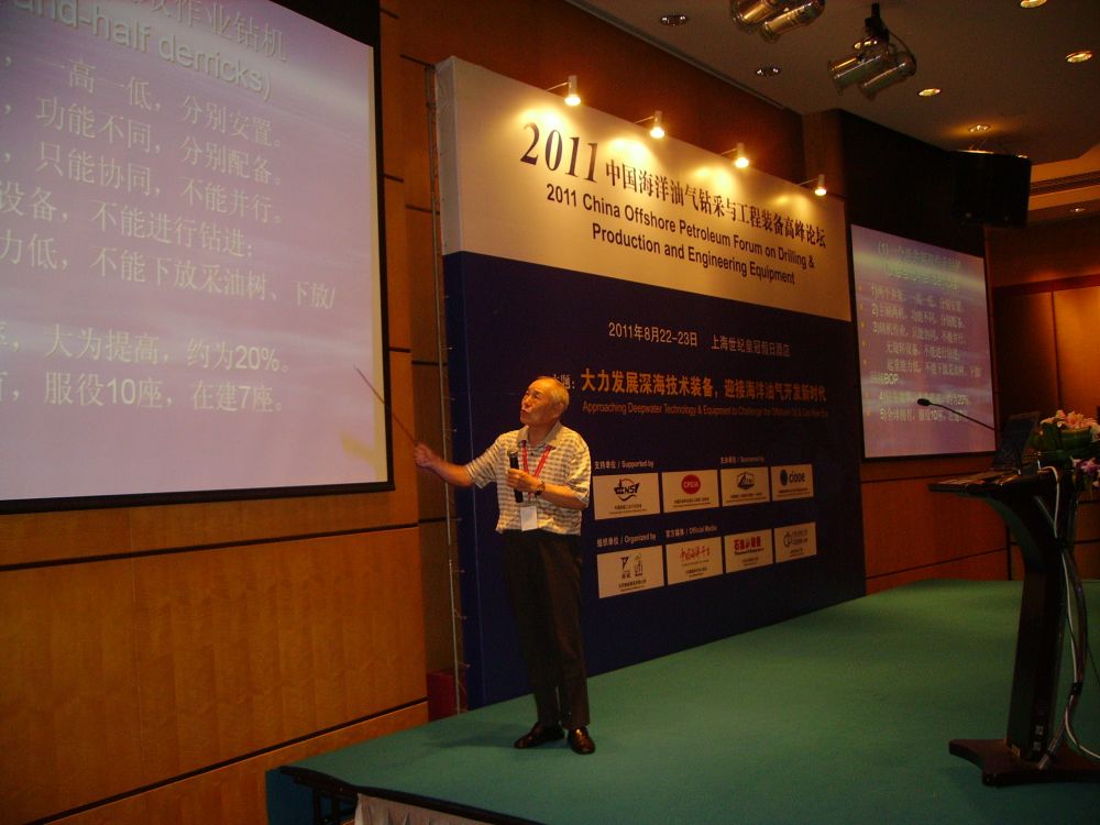 2011年,方華燦在上海參加中國海洋油氣鉆采與工程裝備高峰論壇時(shí)作學(xué)術(shù)報(bào)告。新華社發(fā)